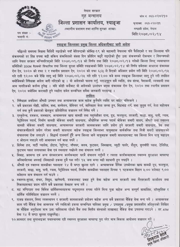स्याङ्जामा थपियो निषेधाज्ञा